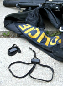 The success of the new device has been recently confirmed by very realistic tests organised within special training. A well-known strongman from a special squad was selected for the verification of the necessary quality. He is so well physically able that it would be very difficult to find a similar one in our population. He simulated a very resistant culprit, who wanted to release himself from the handcuffs almost at any price (like he was expecting ten years of hard imprisonment…). He tried a unique “fight” with this new tactical equipment. We must admit that the situation was made easier to him a bit by the fact that his wrists were well protected during this unusual test with a soft protective layer. That allowed him to develop the maximum pull his extremely well trained body could accomplish. This unique test started after careful installation of the handcuffs made by ESP. The figurant pulled carefully at first, but later in full strength. Puffy muscles, veins looking like ropes – the handcuffs looked like they would explode. In the end, we heard a pronounced cracking sound. Some people thought about a broken strip, while others tipped the broken lock. However, it was badly broken bone as we all found a bit later. It should be said that not many people among the on lookers expected that this “string like” material and the relatively delicate design would resist so well the boundary human skills. In addition, as the “testing person” recognised by himself later, he would not be able to develop such a strength without the softening bandage (he is a very resistant person who can overcome pain, but despite the protective layers, there were purple lines on his wrists which healed only slowly). The mentioned test thus provides for the necessary warranty that this new equipment could become a very reliable aid to all who, in their jobs, undertake activities, during which the quality securing of a risky person could be vital.