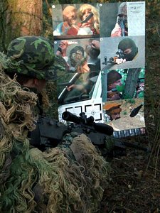 Training of some special skills has very special specifications and requirements. This is most evident particularly in case of training of police and military snipers. The shooting distance is here much longer than in case of majority of other weapons and targets are incomparably more difficult due to their appearance. Besides, responsibility ensuing from necessity of action in real action can be tremendous. That’s why shooting practice of snipers requires somewhat different targets, in comparison to usual firing practice with use of pistol or machine gun. Nevertheless, only few targets designed specifically for such training exist in practice. Apart from that the available targets are not very suitable due to their design and unrealistic appearance. Out of necessity various substitutes and even ordinary pistol targets, often just black and white, animated and not very imaginative were used. For these reasons numerous police snipers and special forces instructors called already for a long time for a completely new paper target, which would finally met even the most demanding requirements of professional sniper training in the third millennium.