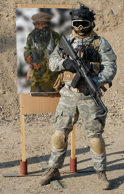 Non-European clothing of other two characters has also a deeper meaning. Not only that majority of the most important international army operations at present is carried out on the territory of Iraq and and Afghanistan, since in the target complex using also central “unarmed” parts of the trainee is lead to understanding that not every local inhabitant with unidentifiable object in his hands must necessarily always be an attacking terrorist. The main task of this part of the „Series“ is therefore prevention of possible future endangering of local innocent population in these stabilising countries and thus prevention of too frequent tragic victims among civilians during confrontation security actions.